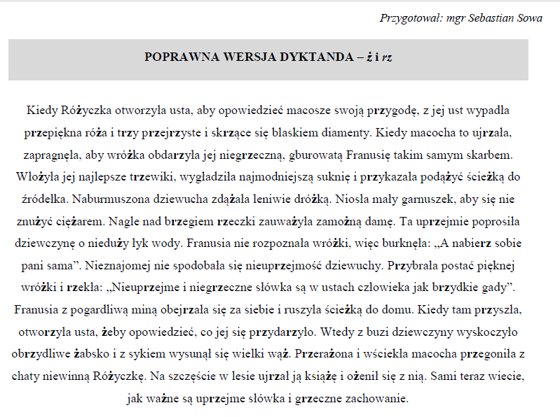 Sowia Wiedza Sebastiana Sowy Profil Edukacyjny Z Jezyka Polskiego 43 Poprawna Wersja Dyktanda Dla Czwartakow Z Oraz Rz