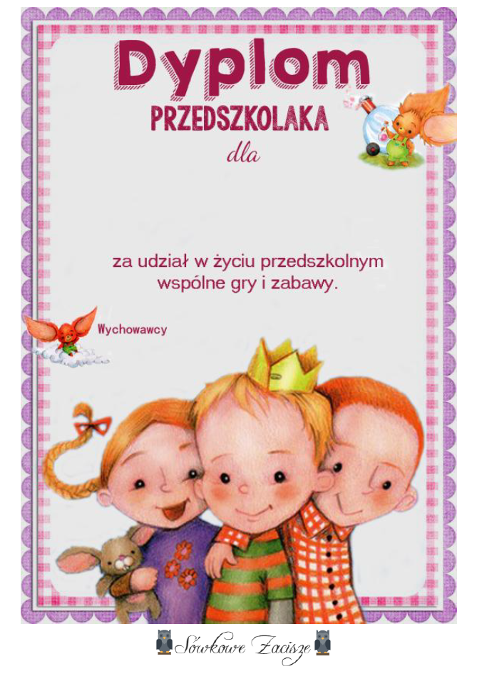 Sowkowe Zacisze Dyplomy Dla Przedszkolakow Na Zakonczenie Roku