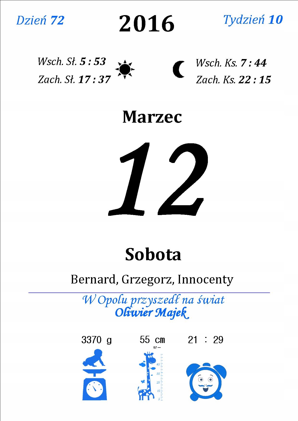Metryczka Dla Dziecka Kartka Z Kalendarza Pamiatka Slubu Rocznicy